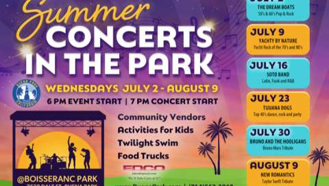 This California Music Festival will have no exhibit booths and tba food booths. There will be 5 stages with National and Regional talent and the hours will be . Admission tickets are $400 - $1000.